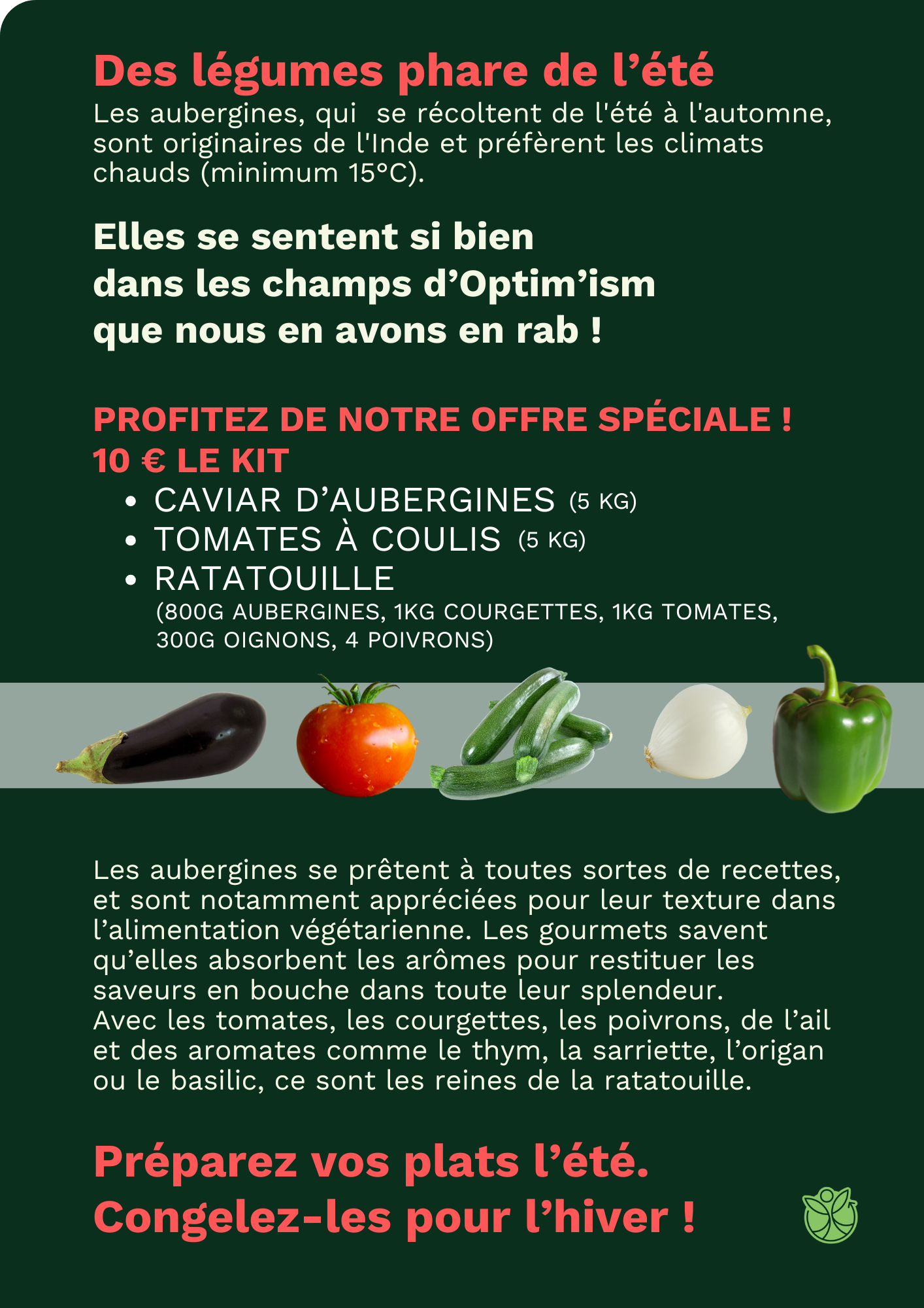 Les aubergines, qui se récoltent de l’été à l’automne, sont originaires de l’Inde et préfèrent les climats chauds (minimum 15°C).