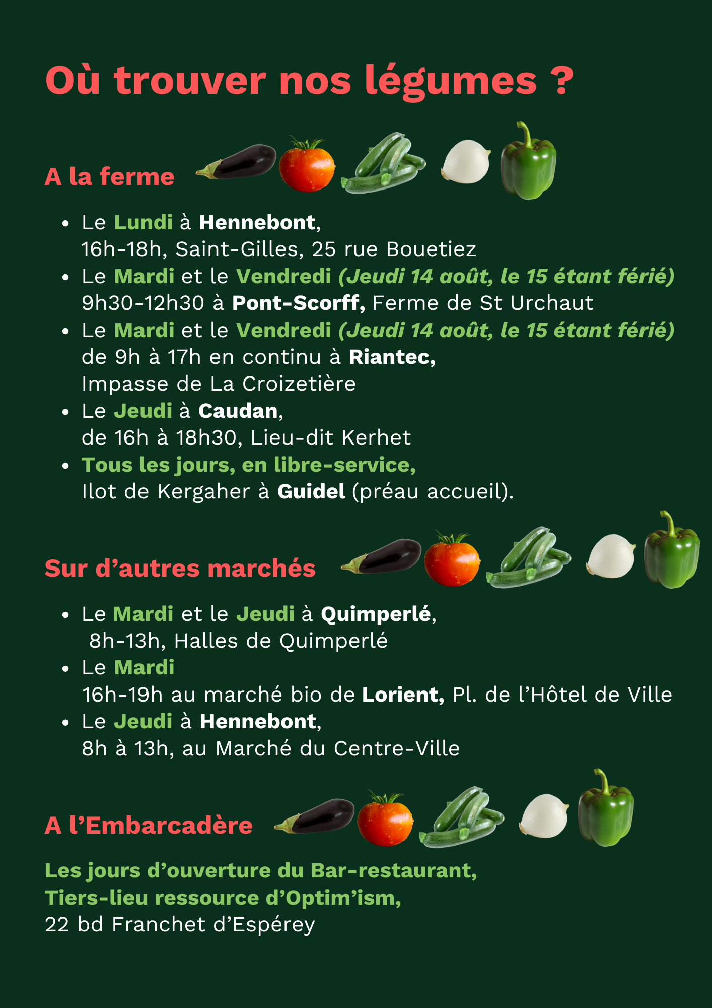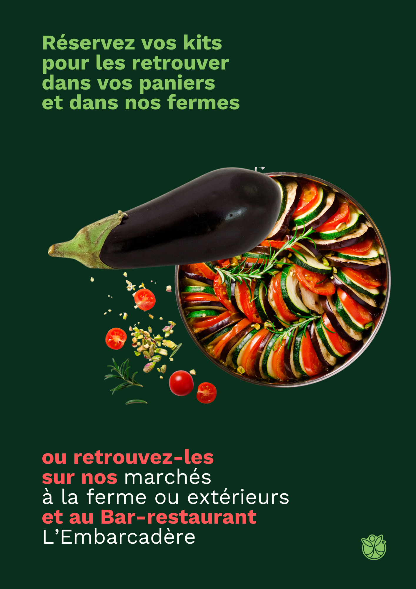 Réservez en ligne vos kits pour les retrouver dans vos paniers, dans nos fermes, sur nos marchés à la ferme ou extérieurs et au Bar-restaurant L’Embarcadère