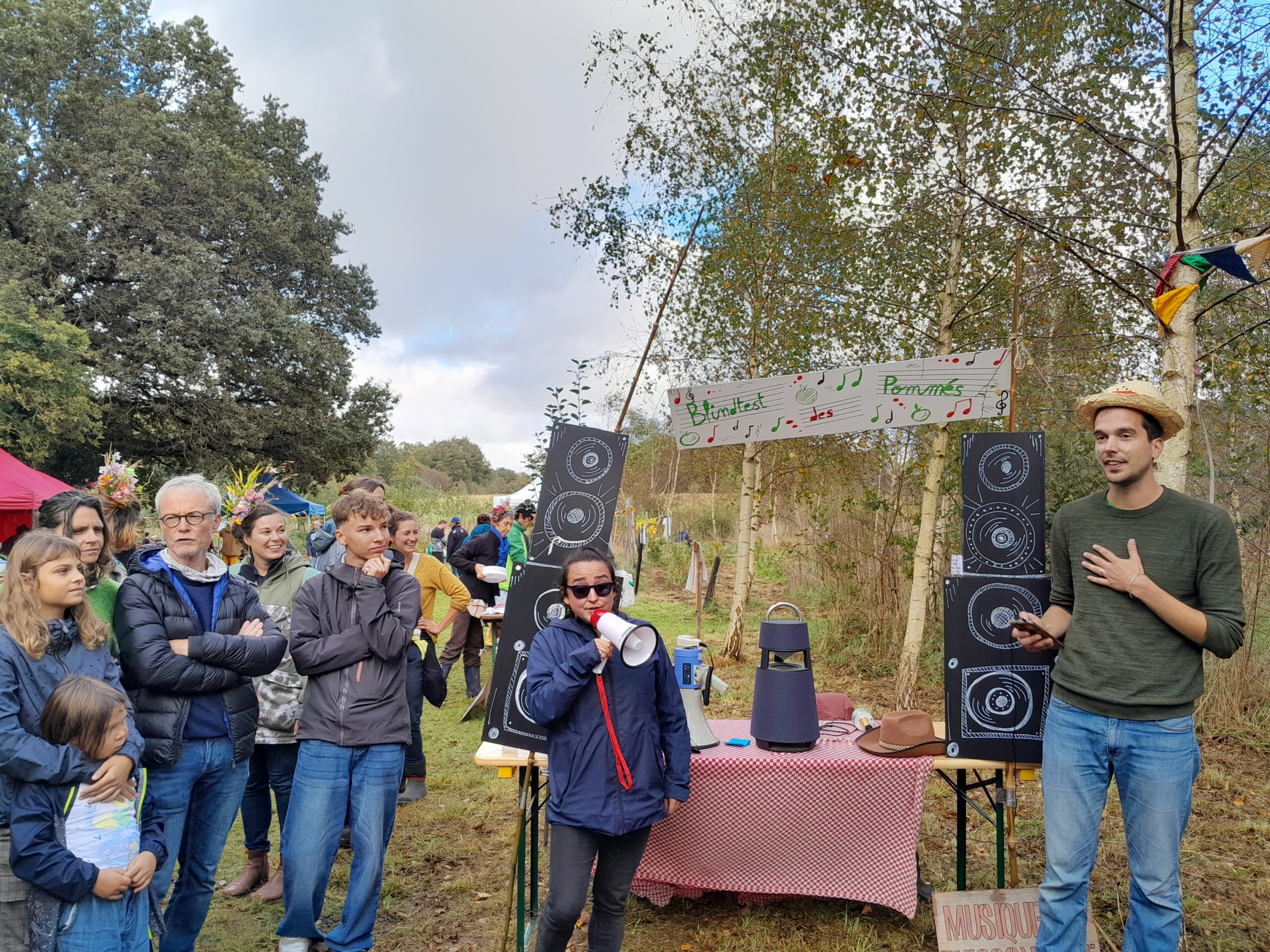 Il y aura des visites du verger avec Lionel, des animations autour de la mare avec Eaux et Rivières, du pressage de pommes manuel, des jeux (courses tracteurs à pédales, jeux en bois et en tout genre (roulette des légumes, concours de la plus longue pelure, juste poids etc…), des découvertes, des expériences insolites, des coiffures et maquillages floraux, de la musique vivante, des sculptures sonores.