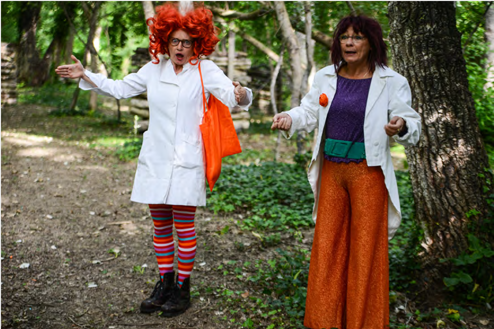 Une fois ces « enseignements » partagés, elles vous emmèneront vivre l’expérience unique et merveilleuse d’une communion avec un arbre. Poussées par ce savant désir et s’aidant même d’un fond sonore, elles vont émoustiller vos 5 sens… Et vous découvrirez les vertus de la sylvothérapie de manière quelque peu décalée.