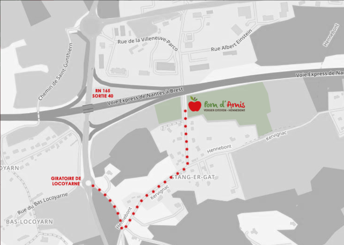 Adresse de localisation Google pour votre GPS : Verger citoyen Pom d’Amis, Lieu-dit Stang er Gat, Hennebont