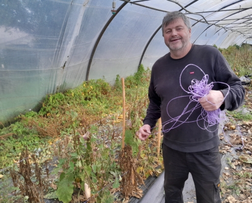 Et ils sont beaux les premiers paniers étudiants livrés dans la foulée de la cueillette des légumes à l’ @ubs_universite Université Bretagne Sud, avec leur belle laitue 🥗 bien pommée tout juste sortie de leurs sillons scorvipontains, leurs pommes de terre 🥔et leurs tomates 🍅pleines de saveurs, sans oublier les poivrons🌶, oignons 🧅et les dernières aubergines🍆, avant arrachage des plants.