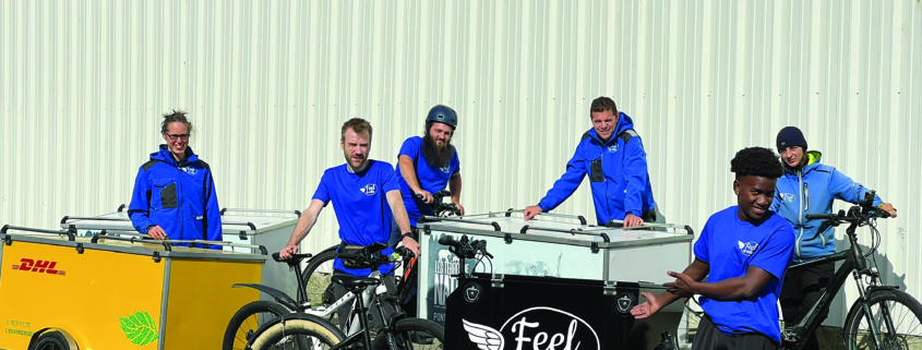 - Elle propose, pour le compte de particuliers et de professionnels, la livraison décarbonée de colis, palettes, courses, repas, en sous-traitance de sociétés comme DHL, UPS, Heppner, DB Schenker ou Dachser. Elle réalise ses missions au moyen de vélo-cargos électriques et de remorques caissons ou plateaux tractées.