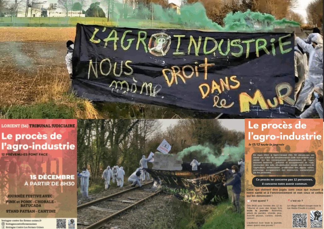 Le Collectif Bretagne contre les fermes usine annonce un village de soutien le 15 décembre 2025 à Lorient lors du procès de 12 citoyens engagés.
