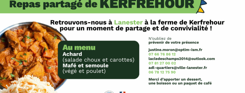La ferme de Kerfrehour ouvre ses portes ce jeudi 26 mars pour un moment de convivialité et de partage en plein quartier pour un repas partagé ! 🌿