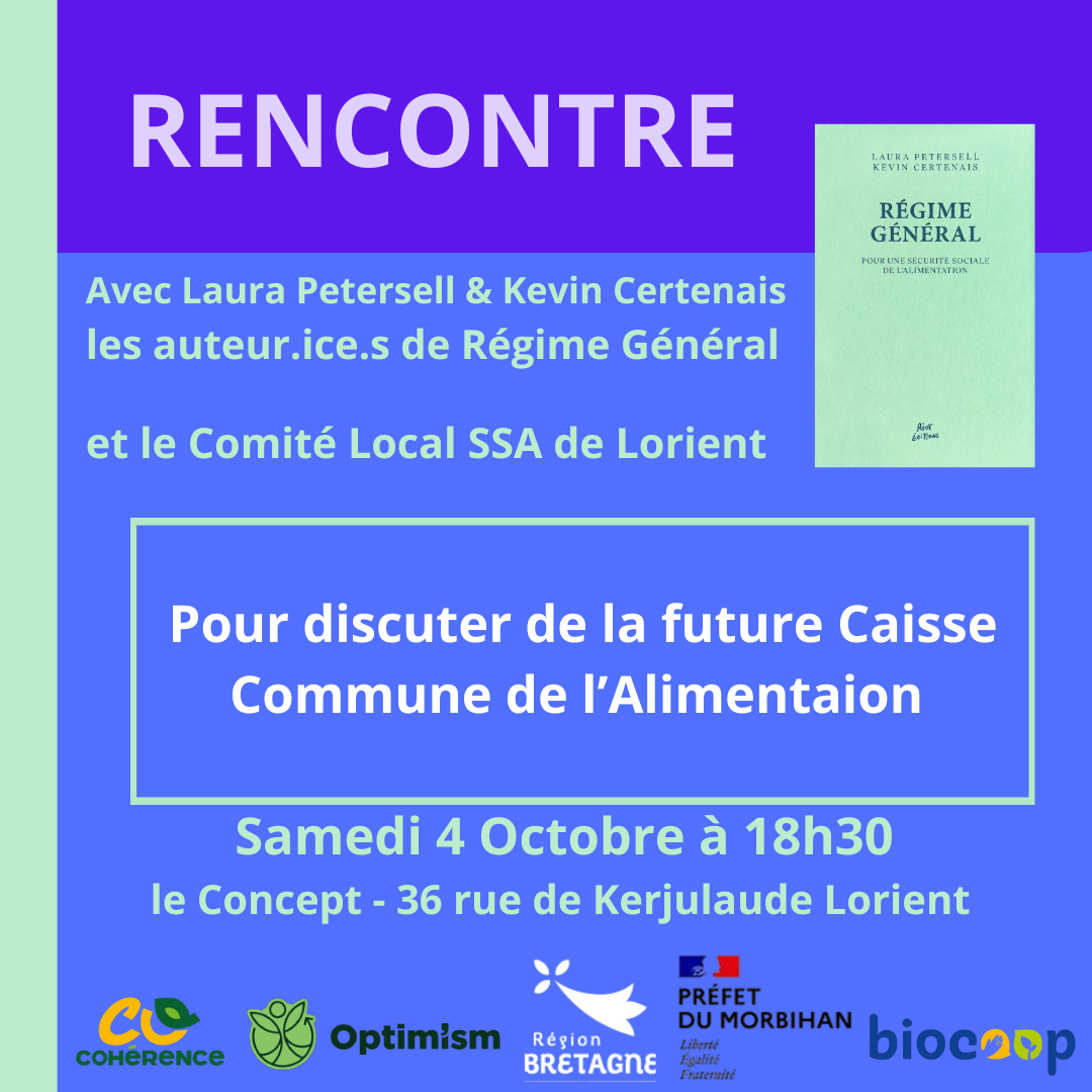 Le comité pour une Sécurité sociale de l’alimentation du Pays de Lorient organise l’événement, en présence des auteur.ices du livre Régime Général, pour présenter sa future caisse commune de l’alimentation dont le lancement est programmé pour mai 2026.